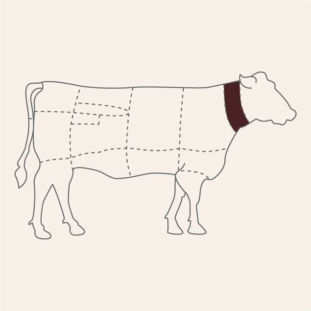 Chuck Tender, Oyster Blade or Mock Tender comes from the Chuck, the base of the neck. It is a strong muscle which does alot of work, and therefore comes with intense beef flavour and is best slowly braised.